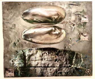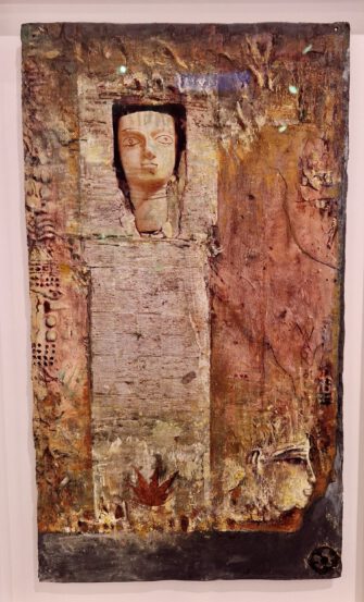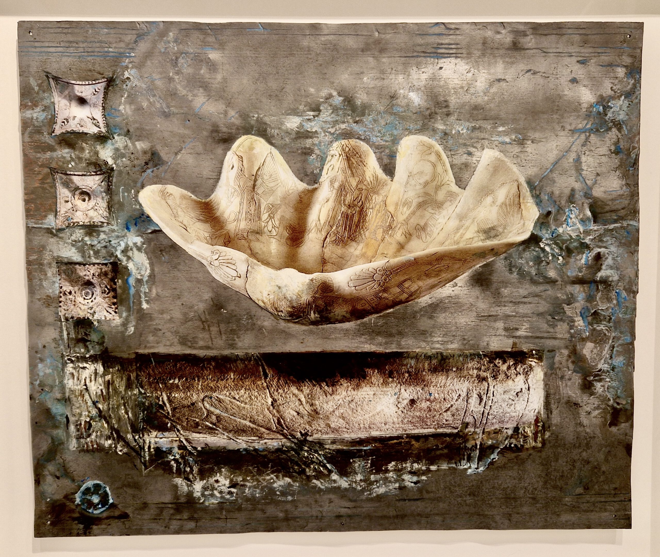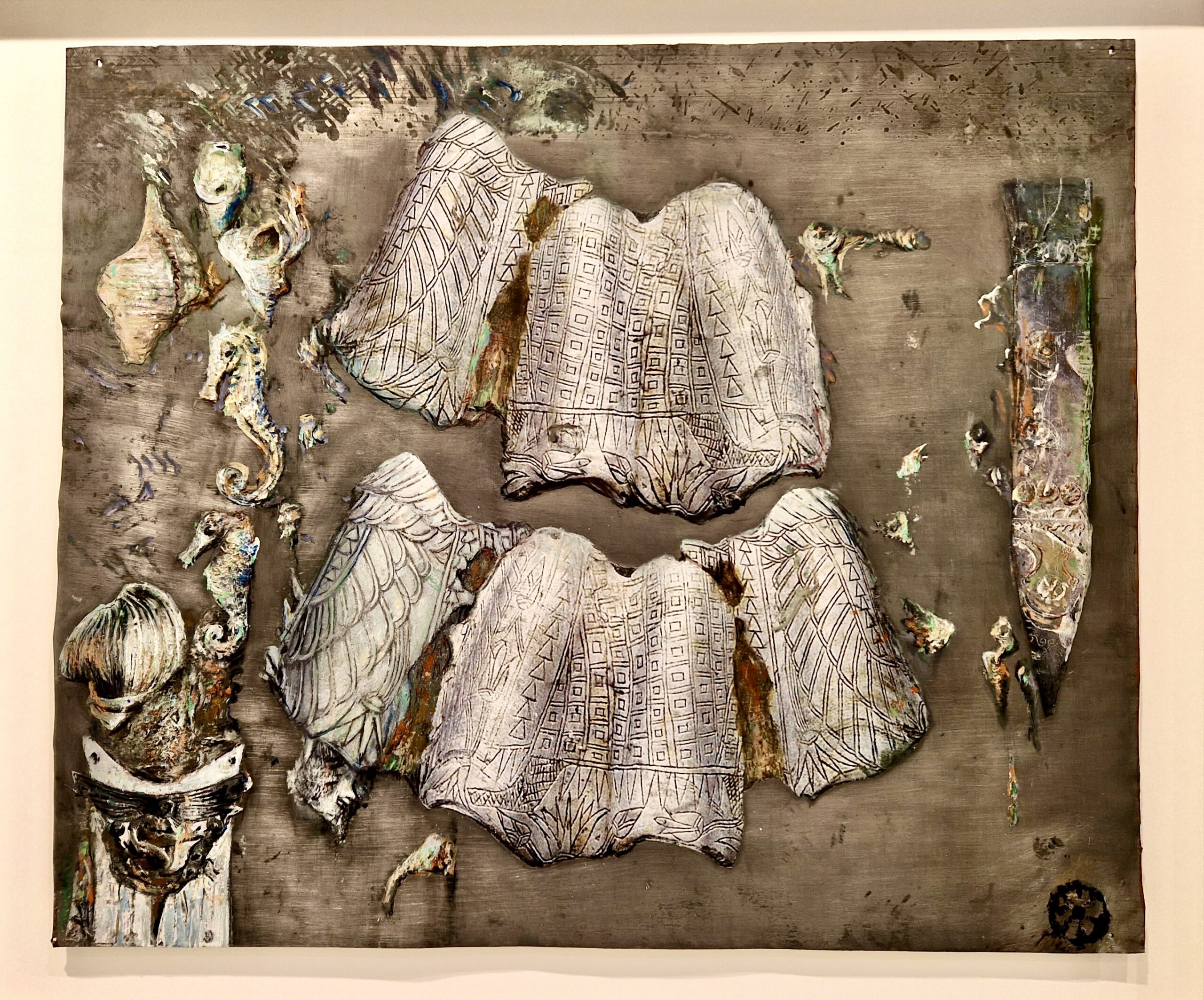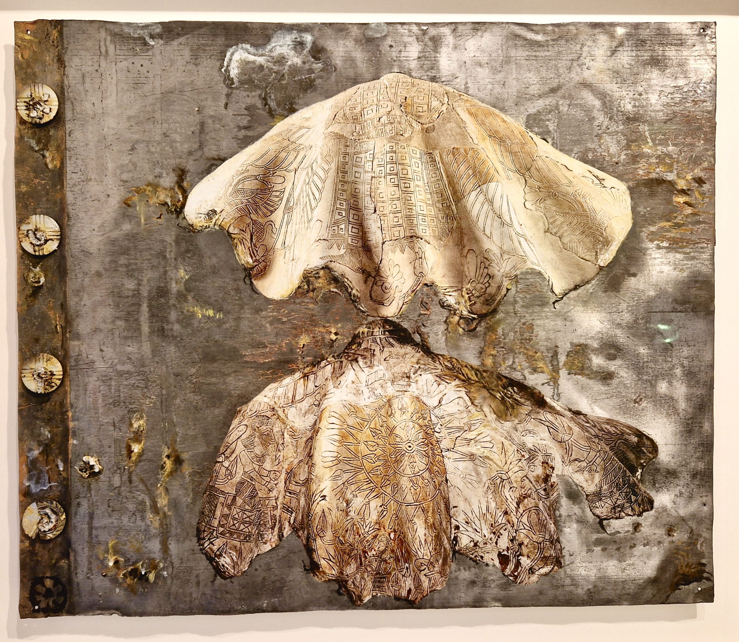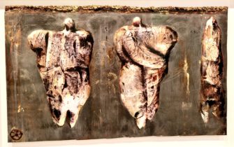 Techniques: oil paint, tempera and small objects on lead (in a high quality frame with museum glass)